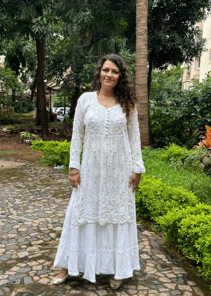 Crush Gharara handcrafted on cotton crush fabric with 3 Tier as shown in the pictures. Lucknowi Hand Embroidery motifs are crafted on all 3 layers of Gharara.